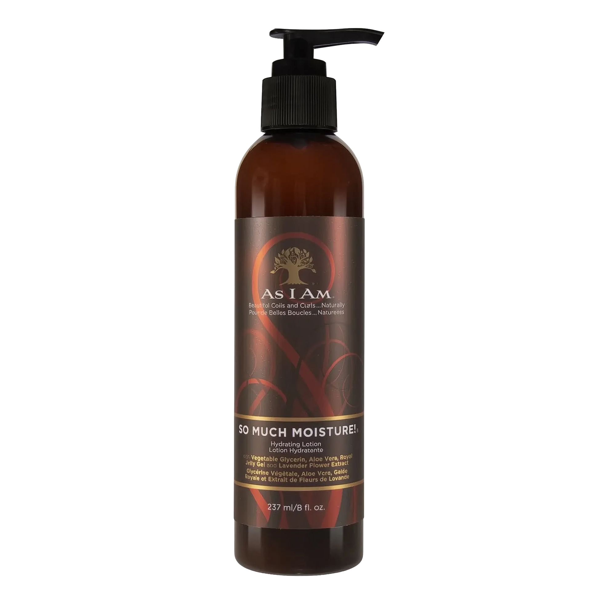 Lotionen & FeuchtigkeitscremesNatürlich strukturiertes Haar ist wunderschön – doch oft fehlt es an Feuchtigkeit. Die Folge: stumpfer Glanz, raues Gefühl, schweres Styling und Locken, die sich nicht richtig definieren lassen. As I Am So Much Moisture!™ ist die Antwort auf dieses Problem: eine glycerinreiche Formel, angereichert mit natürlichen Pflanzenextrakten, die deinem Haar intensive Feuchtigkeit, unglaubliche Geschmeidigkeit und neue Lebendigkeit schenkt.
